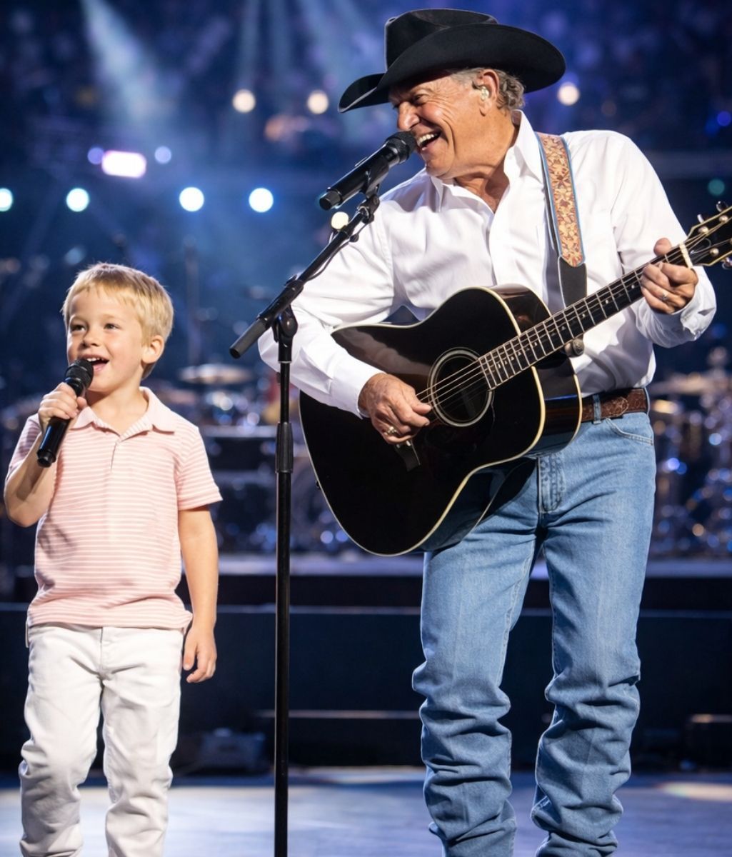 The performance unfolded without spectacle or buildup. George Strait, long revered for his restraint and authenticity, stood calmly at the microphone as his grandson joined him. There was no sense of novelty or gimmick—only anticipation. From the very first notes, it was clear this was not a moment engineered for virality. It was something real. And that sincerity is precisely what ignited the internet.