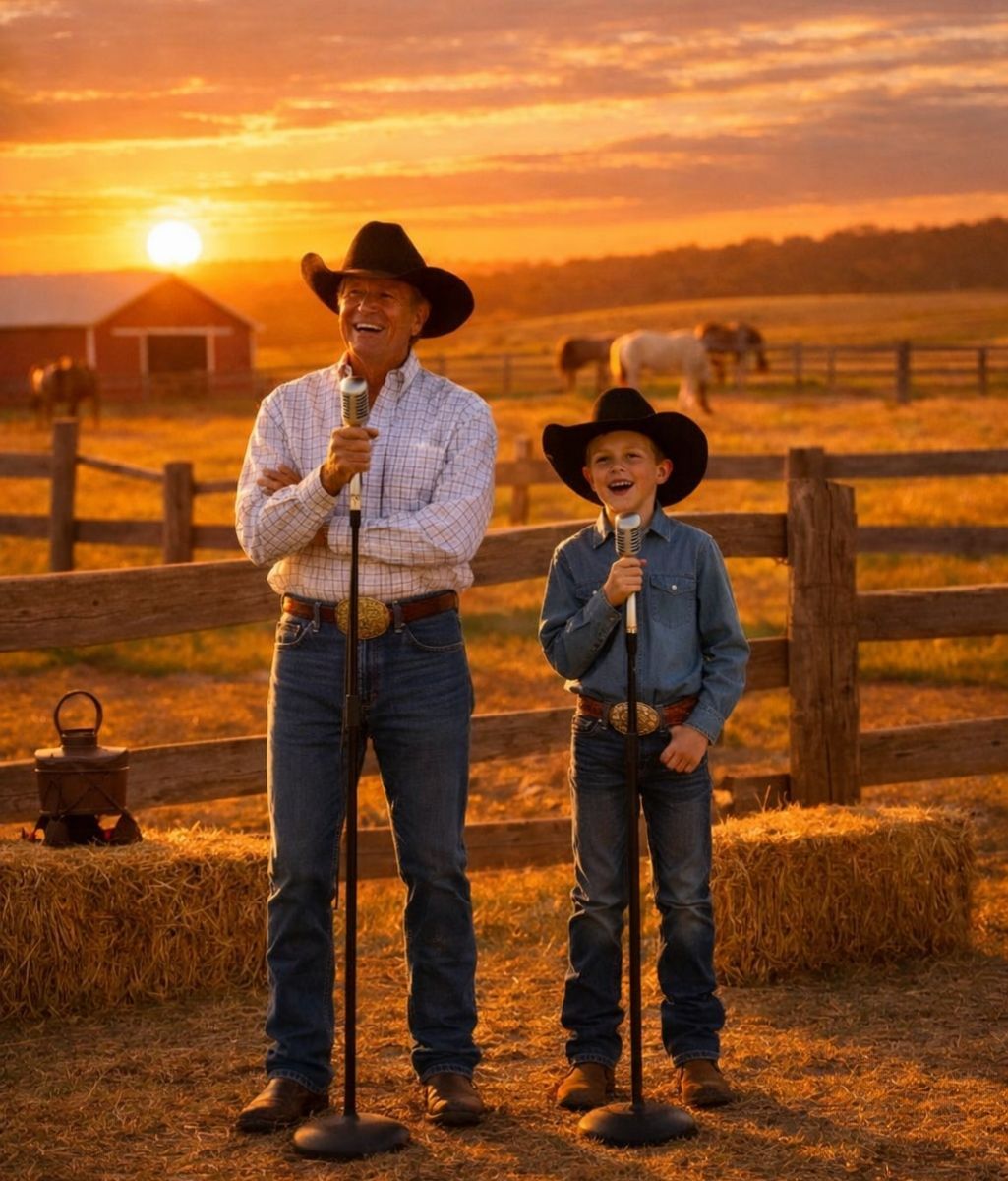 Filmed quietly at George Strait’s Texas ranch, the video shows no stage, no lights, and no crowd. There is only open land, familiar surroundings, and two generations standing close together. George’s voice, steady yet softened by age and experience, leads the melody. Then Harvey’s voice enters — small, fragile, and completely unguarded. He sings not to impress, but because he feels the song.