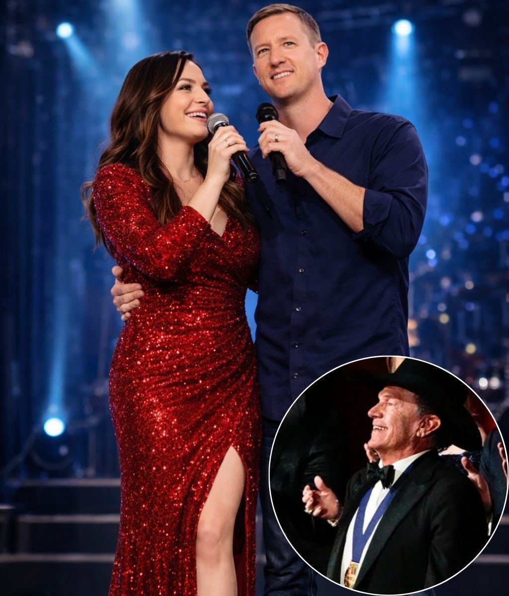 On the grand stage of the Kennedy Center, last night unfolded into a moment that felt timeless, intimate, and profoundly sincere. What the audience witnessed was not simply a performance, but a living expression of gratitude, family, and the enduring heart of country music. Standing beneath the lights, Bubba Strait and his wife delivered a heartfelt duet of Amarillo by Morning, offered as a tribute to the man watching quietly from the audience — George Strait.
