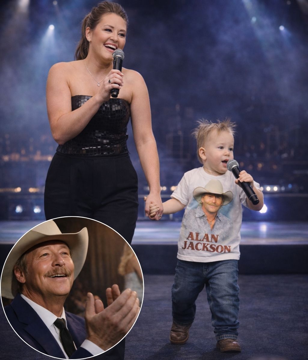 Standing under the lights were Mattie Jackson and her 3-year-old son, Wesley, side by side. Together, they delivered a heartfelt duet of Chattahoochee, a song inseparable from the legacy of Alan Jackson, who was watching quietly from the audience.