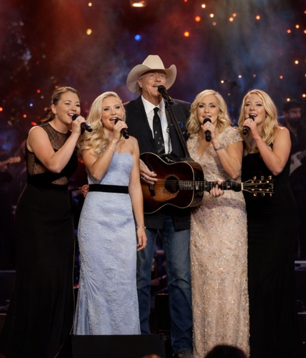 Last night, the stage became something far more intimate than a place for performance. As the lights softened and the crowd settled, Alan Jackson stepped forward not as a lone figure, but surrounded by his family. There was no announcement, no cue to signal what was coming. And yet, from the first quiet seconds, everyone sensed that this would be a moment carried by meaning rather than spectacle.