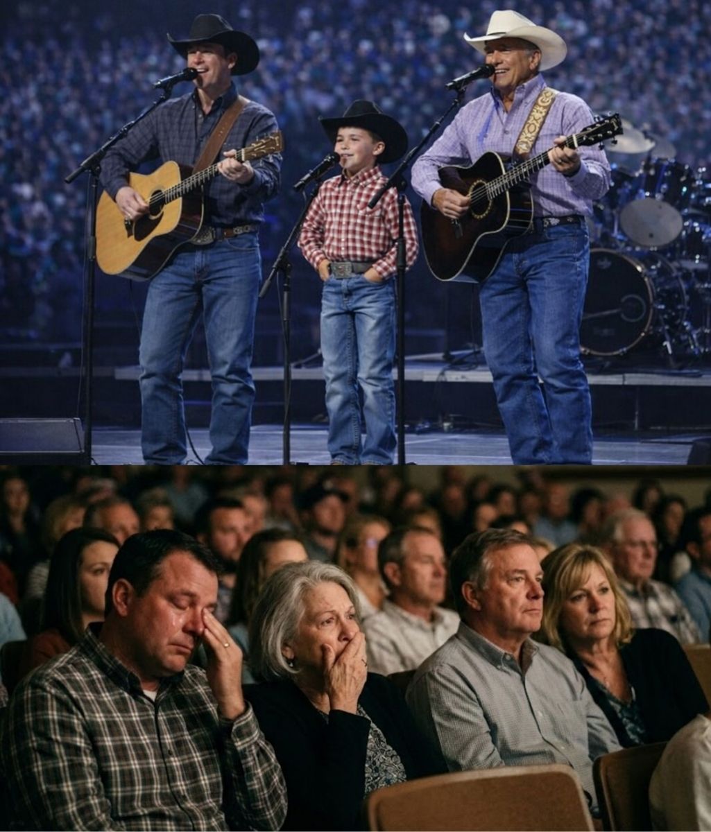 George Strait stepped onto the stage with his son Bubba and his young grandson, Harvey. Fans were stunned by Harvey’s clear, innocent voice