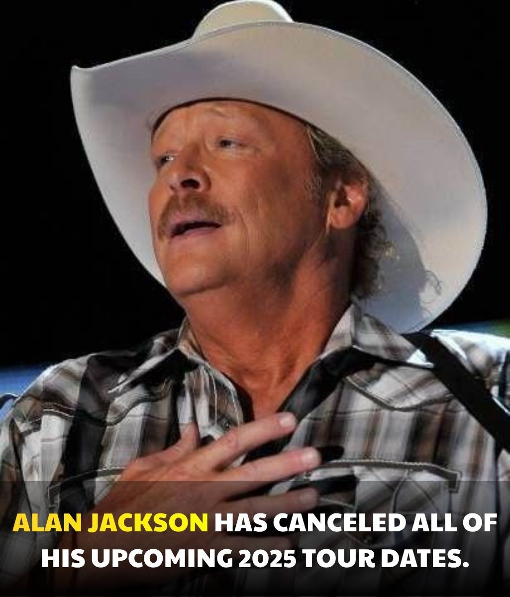 In a move that has left the country music world reeling, Alan Jackson has officially canceled all of his upcoming 2025 tour dates, sparking an outpouring of emotion and speculation across the internet. Within minutes of the announcement, social media exploded with messages of heartbreak, support, and concern for one of country music’s most beloved icons.