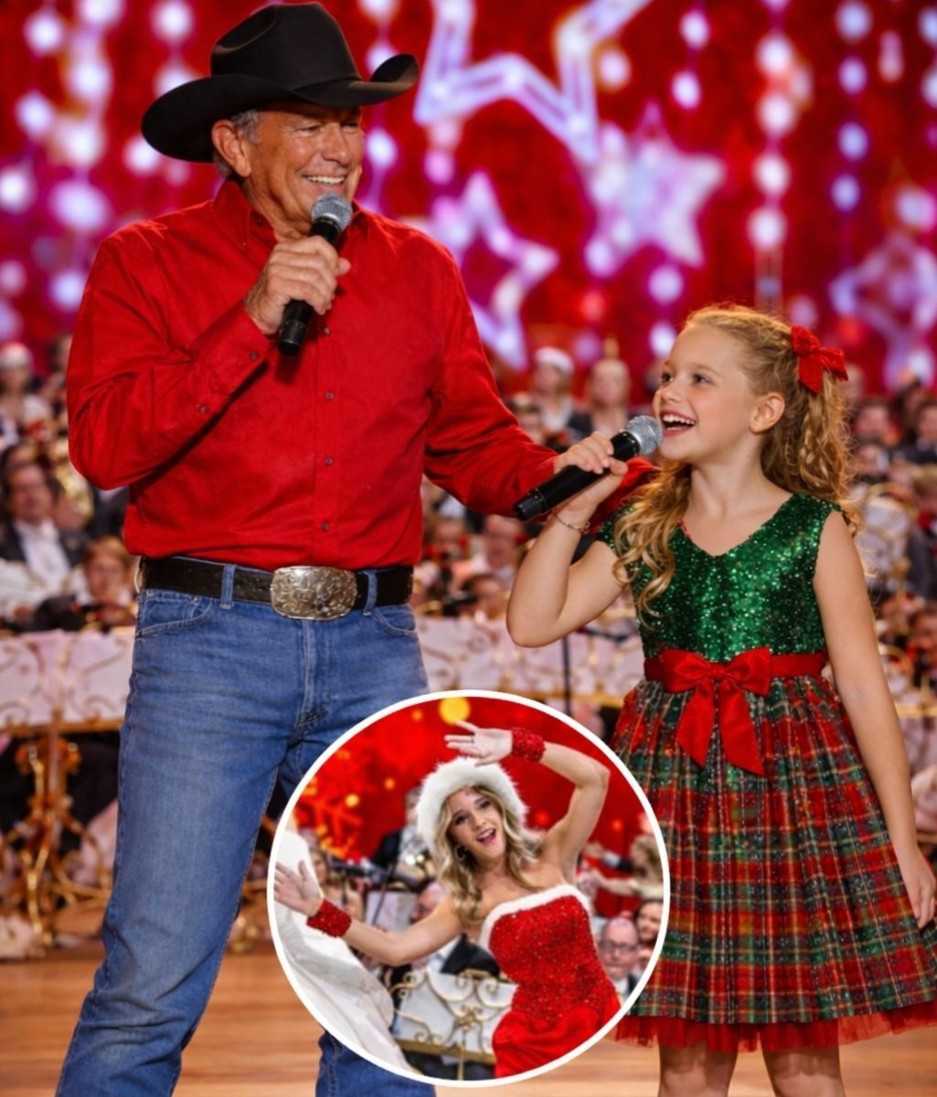 From the very first seconds, the vast hall seemed to forget how to breathe. On that Christmas night, when George Strait stepped onto the stage together with his 9-year-old granddaughter, Jilliann Louise Strait, something rare took hold of the room.
