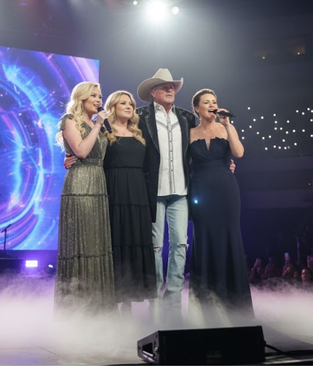 When the first familiar strains of “Livin’ On Love” began to play, the atmosphere was thick with a sweet, nostalgic gravity. The song has always been a manifesto for a life built on substance rather than sparkle, and hearing it sung by two generations of the same family gave the lyrics a renewed vitality. Alan’s iconic, steady baritone provided the anchor, but it was the harmonious blend of his daughters’ voices that truly stole the show. Their voices moved together with that effortless, shimmering quality that only siblings can achieve, creating a tapestry of sound that felt both modern and timeless.