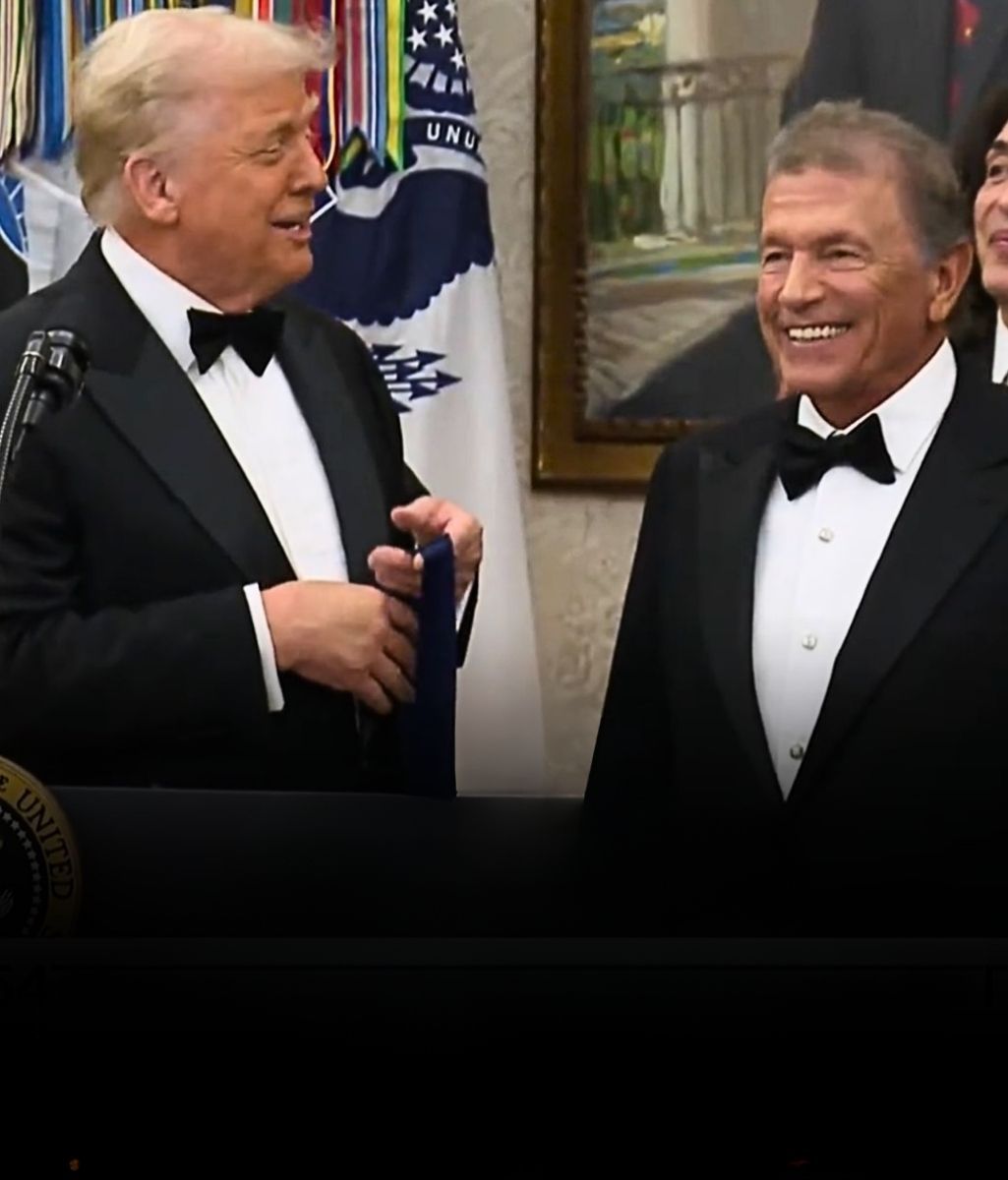 George removed his hat with the same gentle humility that has defined his life and career, revealing his neatly kept hair beneath it. Without missing a beat, President Trump glanced at him and quipped: