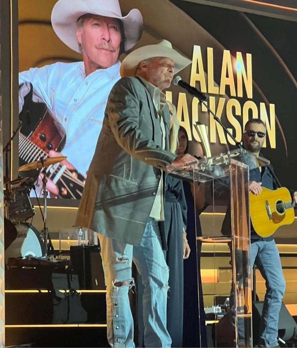Alan Jackson stood steady at the microphone, shoulders squared, eyes forward. He wasn’t addressing the audience directly, yet he was speaking to all of them. His voice carried gratitude without saying thank you. It carried farewell without announcing one. That was what made it unbearable and beautiful at the same time.