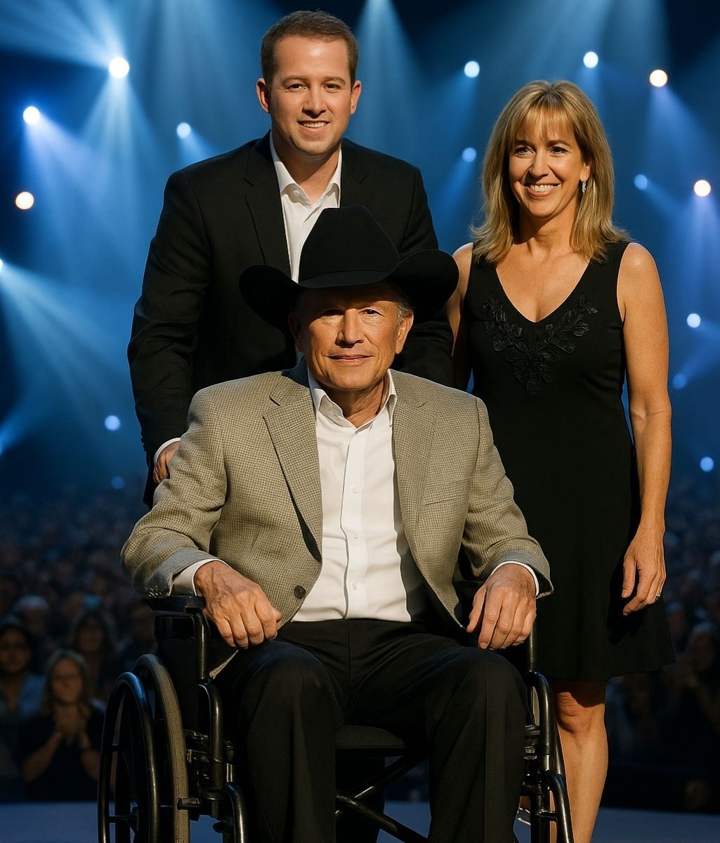 The lights inside the Grand Ole Opry dimmed slowly, not with drama, but with reverence. The murmurs in the hall softened, then vanished altogether. Out of the shadows, a wheelchair rolled quietly onto the stage — and sitting there was George Strait.